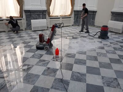 Щелочная очистка — второй шаг. Раствор 50 г NaOH на 1 л воды при 50 °C удаляет плёнку затирки за 90 секунд. Наносите микрофиброй 400 г/м², иначе остаются белые разводы на кафеле. После промывки pH-метр должен показывать 7,0 — иначе последующее нанесение воска не прилипнет.